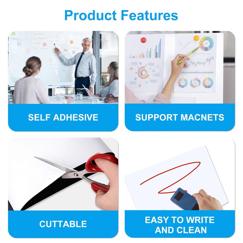 - 【Cutting ability】: Our MYIYCESQ whiteboards are made of frosted PVC film and nano-iron glue fibers. You can cut it to the size you want and paste it on a wall or other surface to provide you with convenient writing space. Magnetic whiteboard stickers can improve communication by providing a visual way to share information.