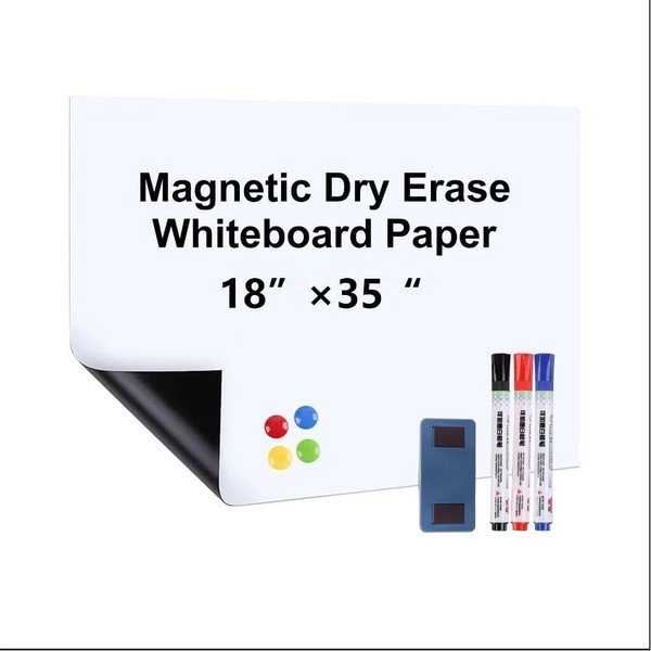 MYIYCESQ Magnetic Dry Erase Whiteboard Paper, 18"×35" Magnetic Adhesive whiteboard,Self Adhesive whiteboard Wall,Easy to Write and Clean,Office,Home,with Marker, Magnetic Eraser and Magnets