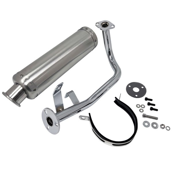 - Includes: Head Pipe Muffler with Gasket and Mounting Hardware