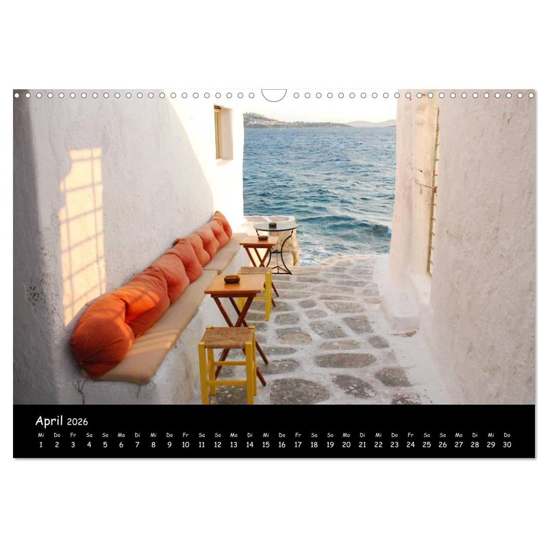 Mykonos - Stille Ecken (Wandkalender 2026 DIN A3 quer), CALVENDO Monatskalender: Streifzüge zu den Ruheoasen der Kykladeninsel (CALVENDO Orte)