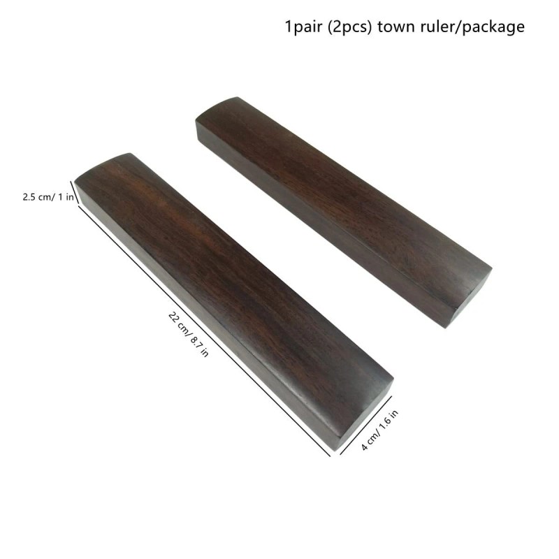 - Product Features: 1. Premium Quality: Crafted from black catalpa wood, these calligraphy paperweights offer a natural and beautiful texture that adds elegance to your writing experience. 2. Heavy and Durable: Made with a heavy material, these paperweights provide stability and ensure your papers stay in place while you work. 3. Fine Polishing: The paperweights are meticulously polished to perfection, giving them a smooth and refined finish that enhances their overall appearance. 4. Delicate Feel: With their delicate touch, these wooden paperweights offer a comfortable and satisfying feel, making them a pleasure to use. 5. Retains Original Wood Touch: The solid wood construction of these paperweights allows you to experience the authentic touch and feel of natural wood. 6. Convenient Package: Each set includes 2pcs (1 pair) of wooden calligraphy paperweights, providing you with a complete and versatile writing tool. 7. Ideal Size: With a size of 8 inches, these paperweights are perfectly sized to accommodate various paper sizes and thicknesses. 8. Enhance Your Calligraphy: These paperweights are designed to enhance your calligraphy skills by keeping your papers steady and preventing any unwanted movement. 9. Eco-Friendly Choice: Made from sustainable black catalpa wood, these paperweights are an environmentally friendly option that aligns with your values. 10. Perfect Gift: Whether for calligraphy enthusiasts or professionals, these wooden paperweights make a thoughtful and stylish gift choice.
