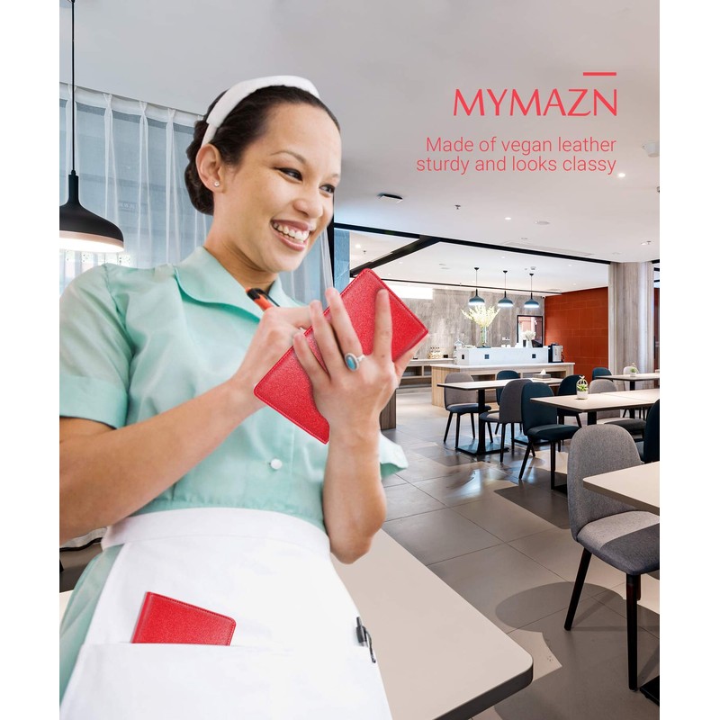 Mymazn Mymazn Server Book for Waitress Book Serving Book Waiter Book Server Wallet Server Booklet Restaurant Waitstaff Organizer, Guest Check Book Holder Money Pocket Fit Server Apron (Red)