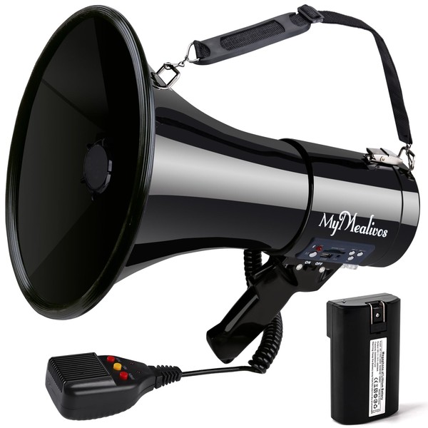 MyMealivos 50W Bluetooth Megaphone with Rechargeable Battery-Professional Bullhorn with Siren&240s Recording Supports USB/SD/3.5mm Aux-1600ft Range for Sports Police Emergency Outdoor Activities-Black