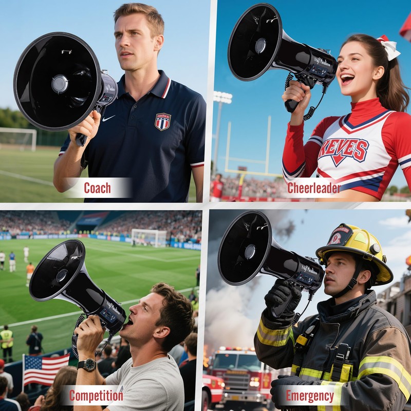 - BE HEARD - This megaphone has 50 watt peak power and can propel your voice and sounds up to 1,200 yards away. Be comfortable with the ergonomic pistol-grip and light-weight chassis. Use indoors or outdoors.