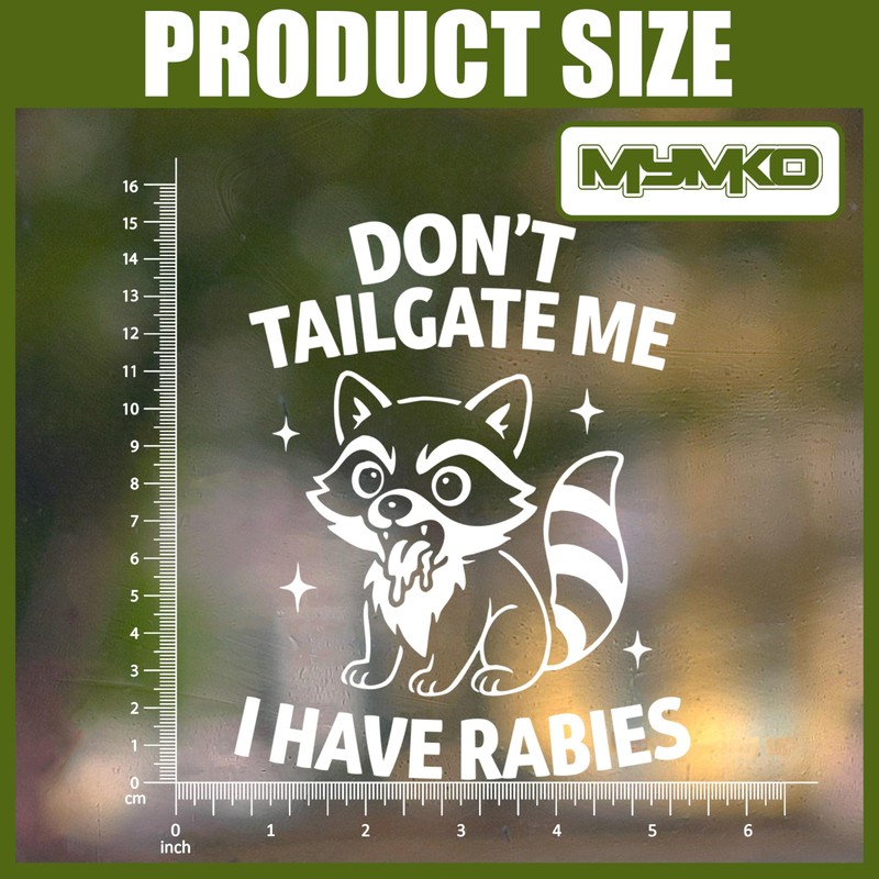 MYMKO Don't Tailgate Me I Have Rabies Decal, Raccoon Car Window Decals, 6 Inches UV DTF Tranfer Car Stickers, Weatherproof Car Truck Window Bumper Sticker, Sarcasm Car Stickers and Decals for Boy Girl