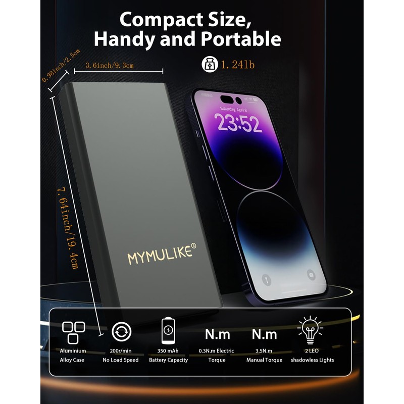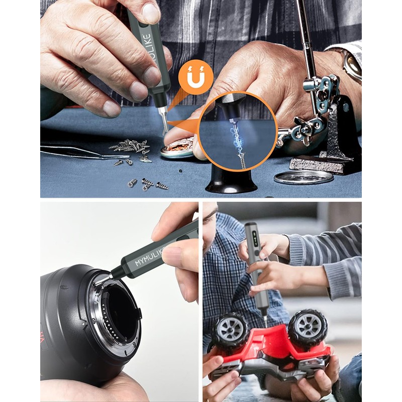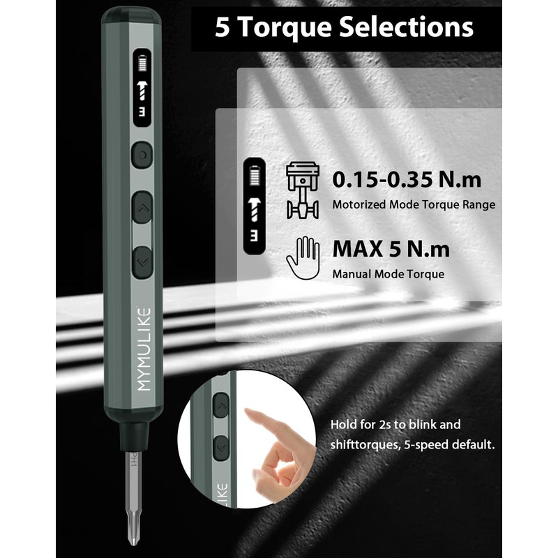 - 【5 TORQUE SETTINGS】MYMULIKE electric precision screwdriver features 5 gear torques ranging from 0.25-0.35N.m, allowing you to adjust the torque precisely to meet various needs. The manual torque of 5N.m gives you increased control for manual screwdriving. With easy torque adjustment and stable torque output, accurate torque will not cause any screw damage