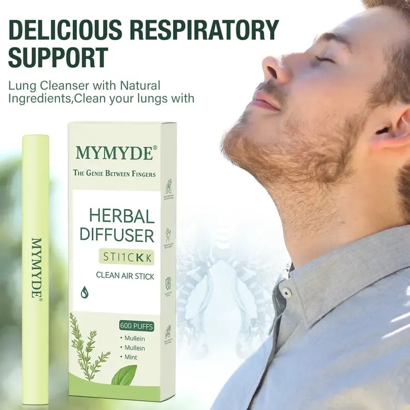 Breathe better, feel refreshed. The MYMYDE Herbal Diffusion Pen combines the natural power of thyme and mint extracts to support lung detoxification and oral air freshening in a simple, convenient stick. Designed for adults seeking a plant-based approach to respiratory wellness, this diffusion stick delivers calming, herbal aromatherapy benefits without the need for batteries or heat.