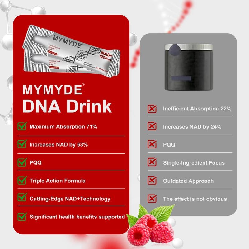 Discover the MYMYDE NR1000 - NAD+ Berry Flavor Drink Mix, a powerful supplement designed to support skin aging, energy, and focus. This 30-pack contains 100g of the product, ensuring you have enough to enjoy throughout the day.