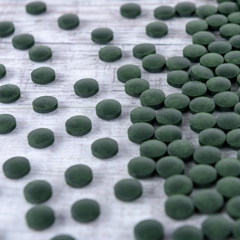 - Mineral and vitamin-rich freshwater algae Spirulina platensis, gently processed
