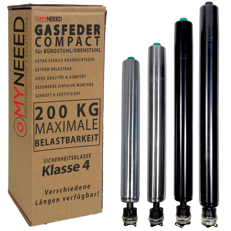 MYNEEED Gas Lift Office Chair Replacement Parts Compact – Replacement Gas Spring up to 200 kg for Swivel Chair Executive Chair – Continuously Height Adjustable – TÜV & GS Tested, Gas Spring Length:
