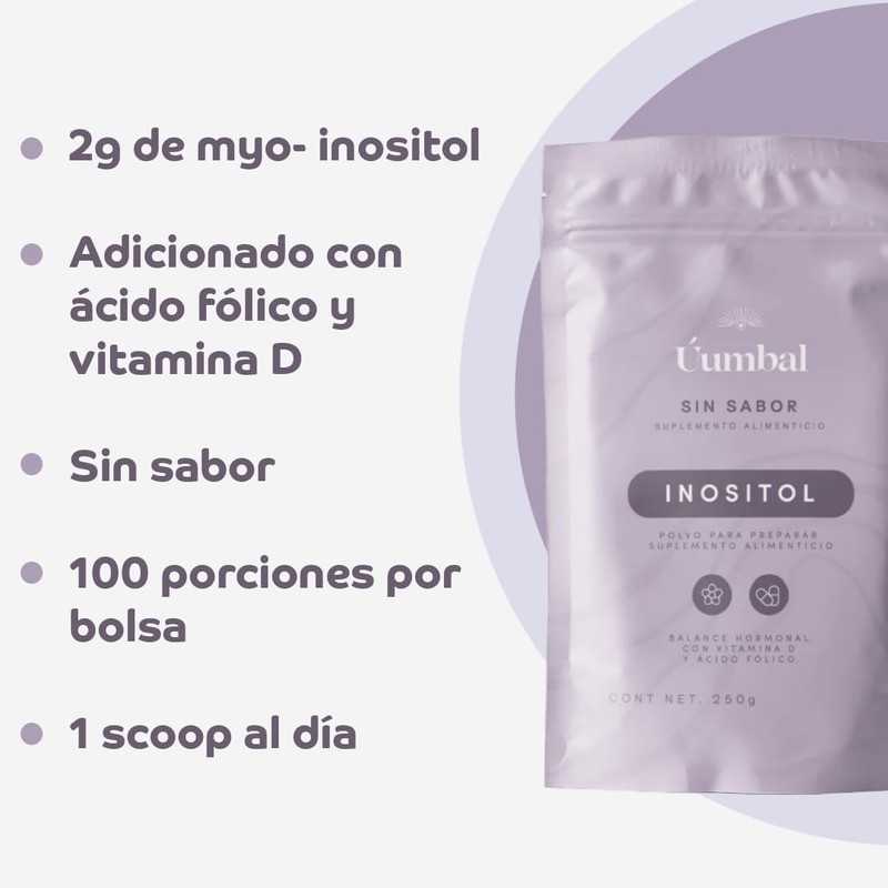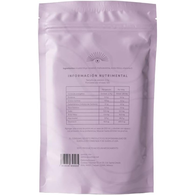 Úumbal Inositol en Polvo 250 g | Myo- Inositol | Adicionado con Vitamina D | Con Ácido Fólico| En polvo | Sin sabor | 100 porciones