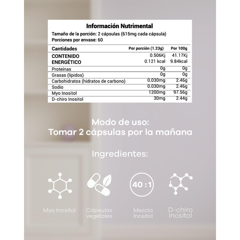 Myo Inositol & D-chiro Forte | 2 Meses | 120 Cápsulas Sin Sabor