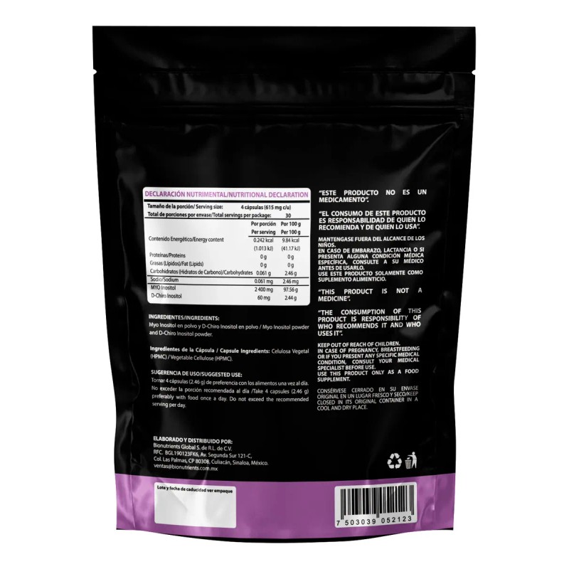 - D-chiro inositol 60mg por porción para apoyo metabólico.