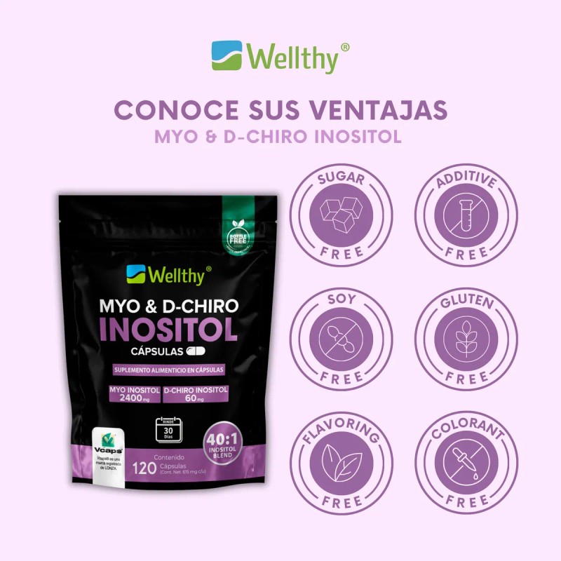 Myo Inositol & Dchiro Inositol 120 Cápsulas 40:1 Lwellthy Sabor Sin Sabor