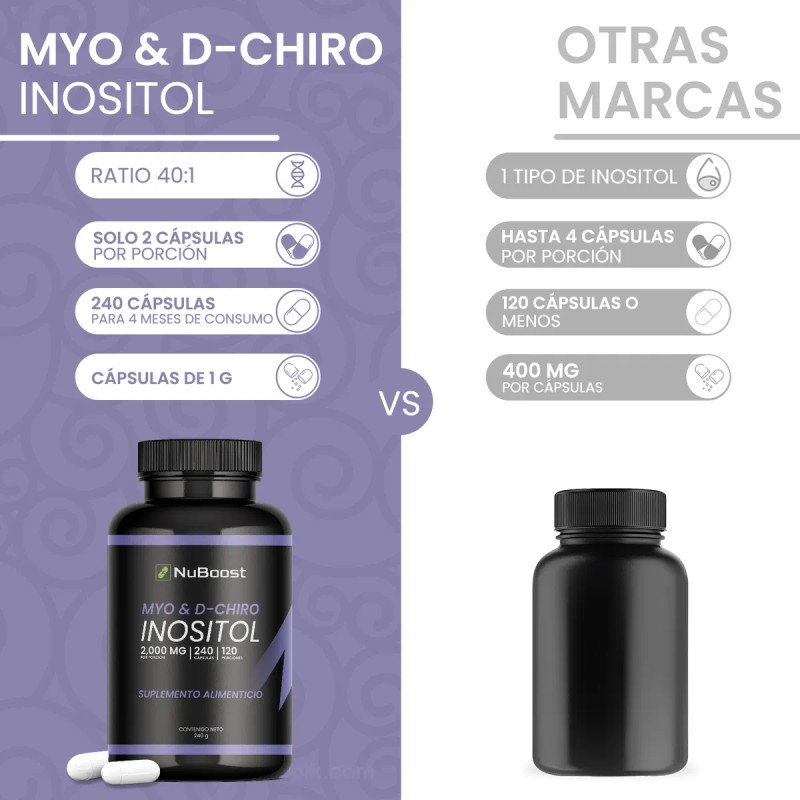 Myo inositol 1950mg + D-chiro Inositol 50mg por porción (2 cápsulas)
