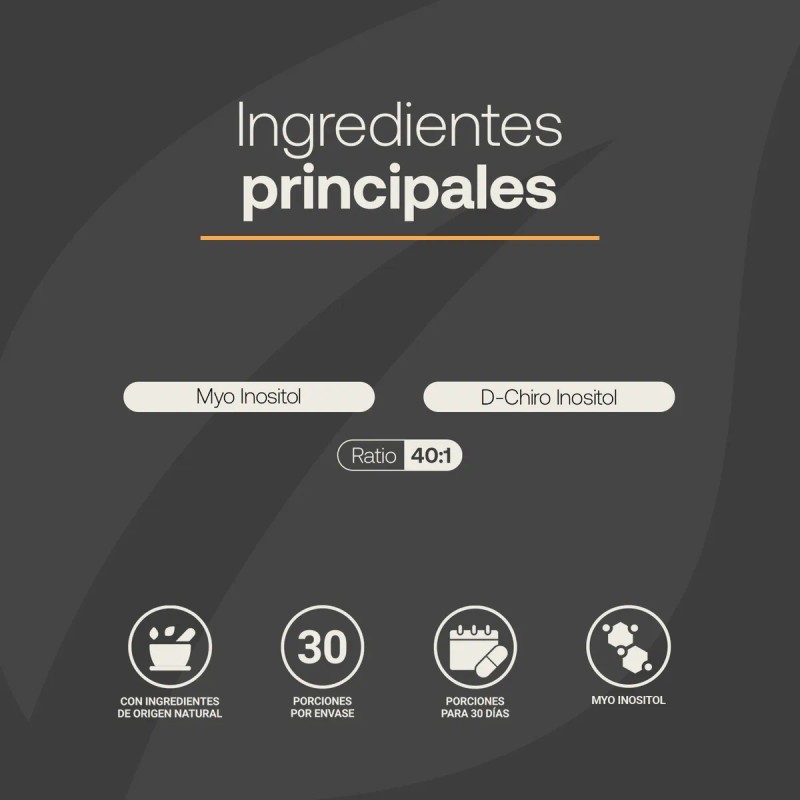 - Chiro Inositol (Proporción de 40:1), beneficiosa para tu bienestar con una concentración de 2000 mg por porción. Contiene 120 cápsulas. Hasta 1 mes de consumo por envase. Ingredientes naturales de alta calidad. Consumir 4 cápsulas al día (2 g) preferiblemente con alimentos (dosis sugerida). Este producto no es un medicamento, su consumo es responsabilidad de quien lo recomienda y usa. Aviso legal