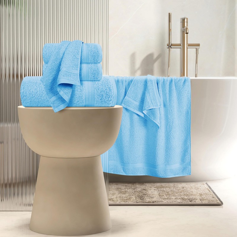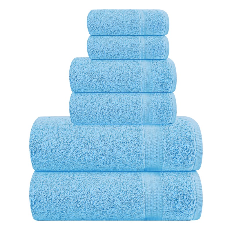 MyOwn 6 Piece Towel Set, 100% Combed Cotton - 2 Bath Towels, 2 Hand Towels, 2 Wash Cloths - 500 GSM Luxury Hotel Quality Ultra Soft Highly Absorbent Towel Set for Bathroom - Sky Blue