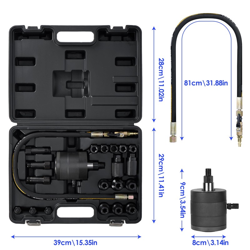 • Upgraded Pneumatic Injector Puller: The pneumatic injector puller kit uses air pressure drive to remove the injector quickly and efficiently, also reducing the risk of damage to the injector or the engine; Simply connect the tool to a reliable air supply (max 5-8 bar) and let the pneumatic force do the work