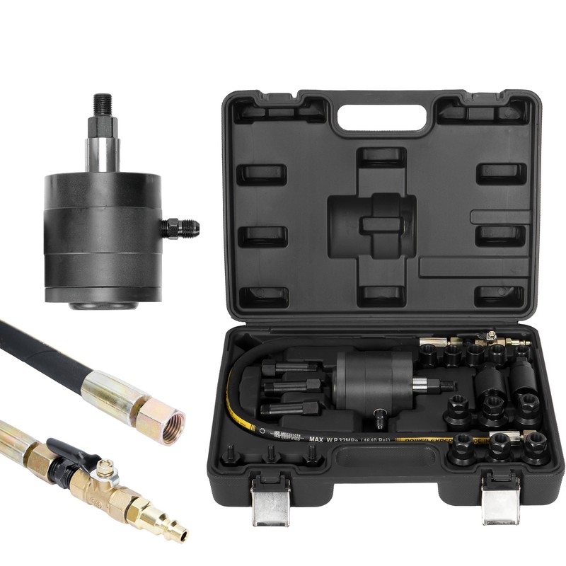 The pneumatic injector puller kit uses air pressure drive to remove the injector quickly and efficiently, also reducing the risk of damage to the injector or the engine. Simply connect the tool to a reliable air supply (max 5-8 bar) and let the pneumatic force do the work.