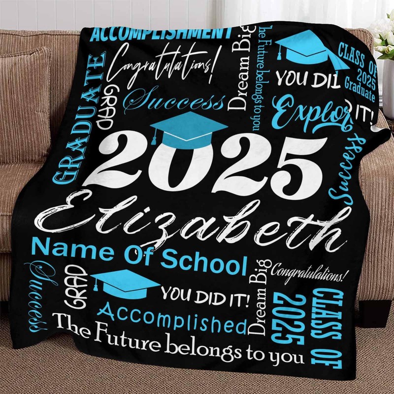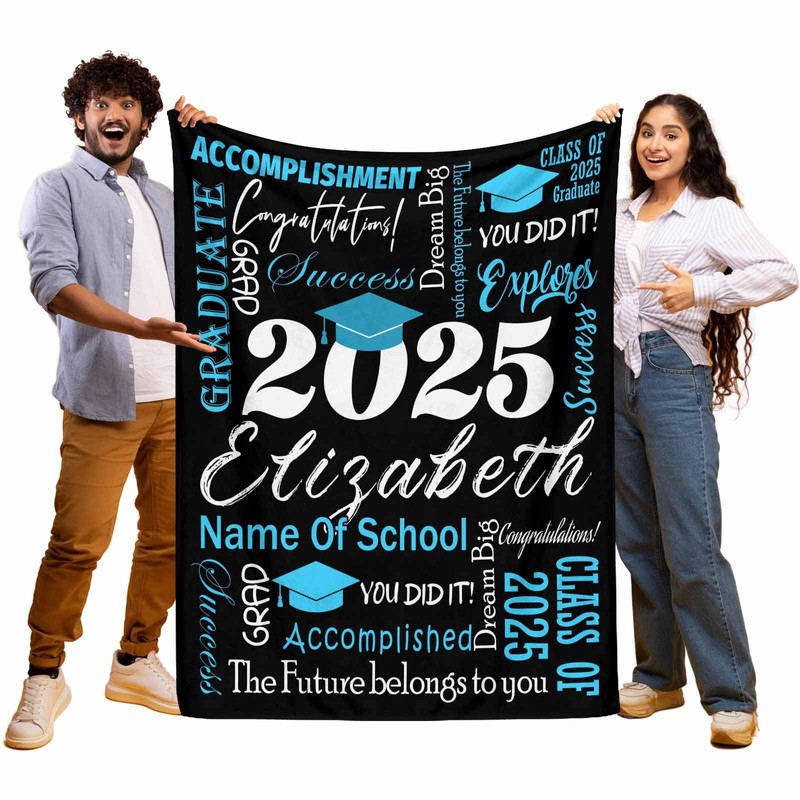 MyPhotoPrint Polyester Graduation Throw Blanket, Class of 2025, Customized Name & Picture, 30x40 inches, Multi Color, Casual Style