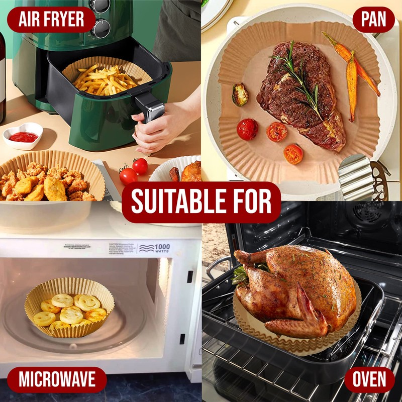 - HEALTHY - Our square air fryer containers are made of 100% food grade material. This air fryer paper is non-toxic, not bleached and contains no dangerous chemicals, so you can only enjoy your favourite food healthy. We recommend that you do not place these paper air fryer moulds when preheating.