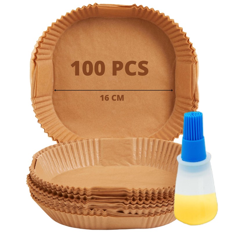 - Contents: This pack contains 100 16cm square airfryer paper with oil dispenser. Our oil-free fryer accessories fit the vast majority of airfryer fryers. We have 2 sizes: 16 cm for fryers from 2.6 to 4.7 litres, including air fryer paper 3 5 litres. And 20 cm perfect for use as an air fryer paper 5.5 litres to 7 litres, air fryer paper Cosori 5.5