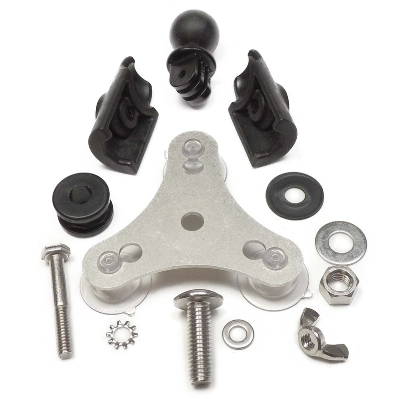 ✔️ The mount fits in tight spaces and because the mount has 3 separate suction cups, it securely attaches to curved windshields as well as flat windshields. The Spider Swivel mount can hold over 5 times the combined weight of the mount itself, an action camera, and case. Due to this weight-to-holding ratio, the Spider Swivel stays securely attached to your windshield even during turbulent flights, bumpy off road riding, or rough waters!