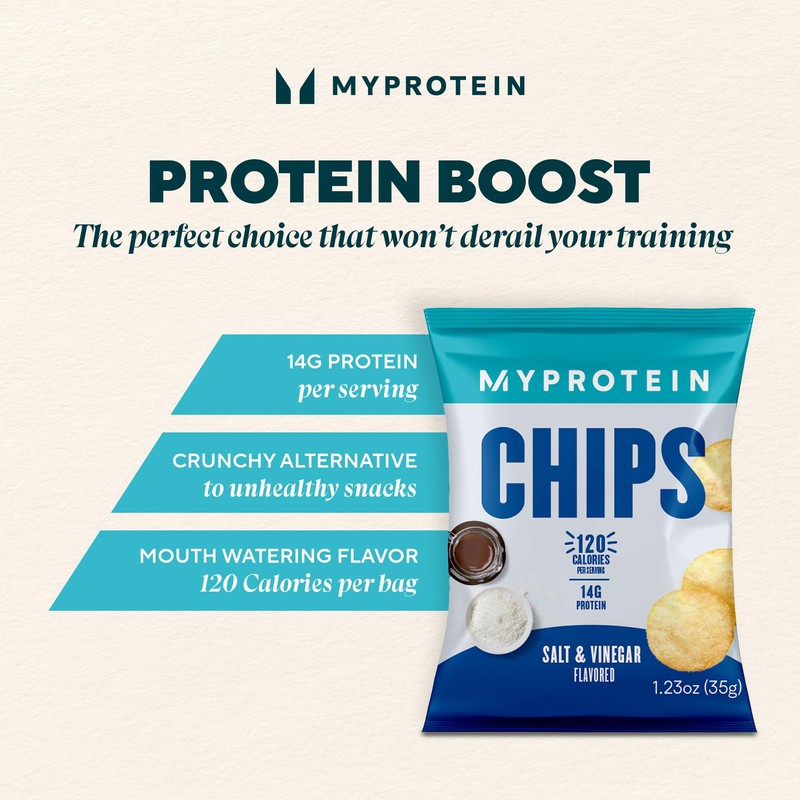 - HIGH-PROTEIN CHIPS: Satisfy your cravings with Myprotein Salt & Vinegar Protein Chips, a fantastic alternative to unhealthy snacks. Perfect for work breaks or gym trips, it's your guilt-free go-to treat. Enjoy with a balanced diet & active lifestyle