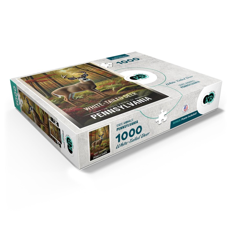 MyPuzzle Pennsylvania, White-Tailed Deer: State Animals Series - Premium 1000 Piece Jigsaw Puzzle for Adults