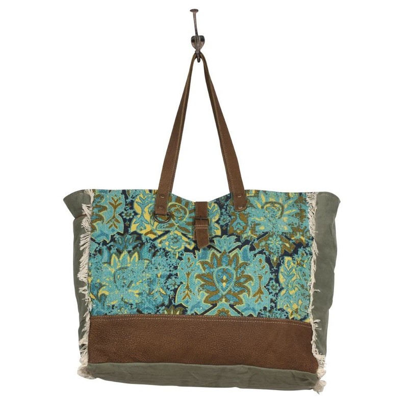 - {Lightweight Canvas Purse} Introducing Myra Women's Aqua Magic Weekender Bag, a lightweight and stunningly beautiful piece perfect for any summer occasion. This premium leather and high-quality canvas weekender bag come in stunning green color with a lovely floral design, making it a truly eye-catching accessory.
