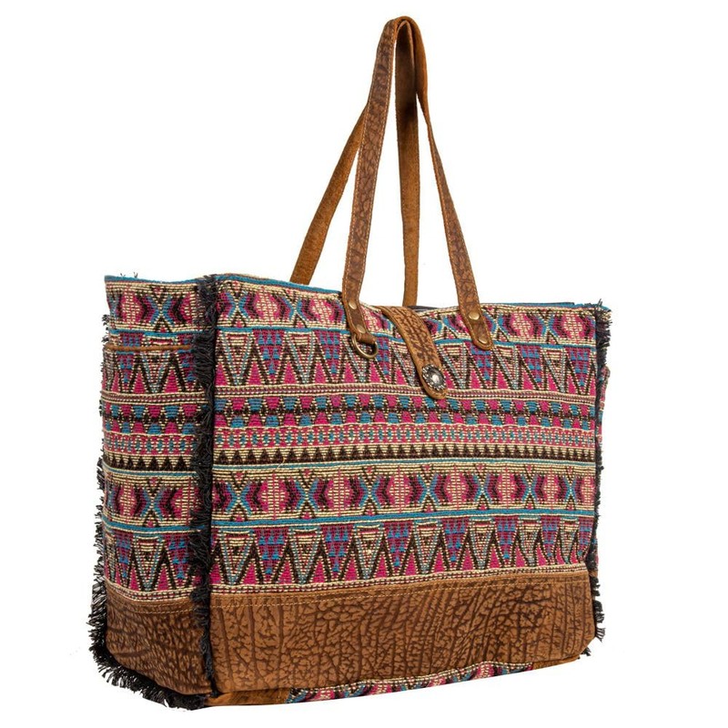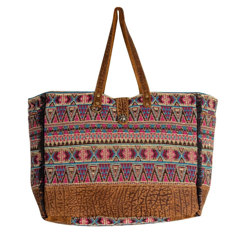 Myra Bag Weekender Bag for Women - Western Upcycled Canvas & Leather Shoulder Bag Colors of the Southwest
