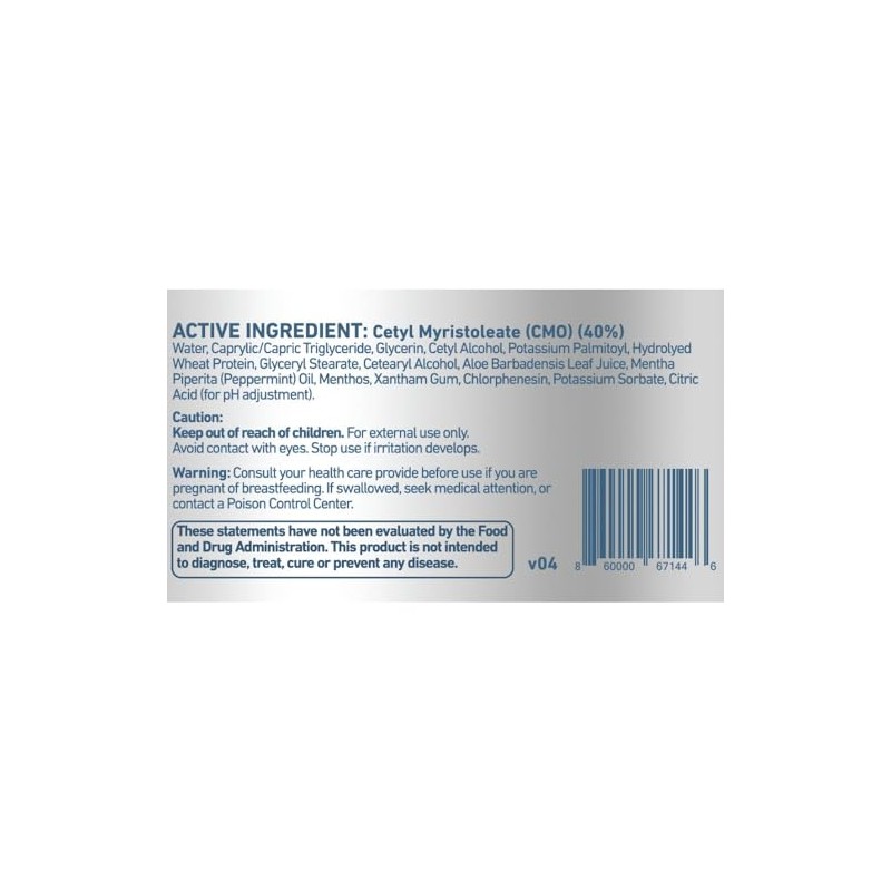 - Active Ingredients: The cream contains cetyl myristoleate and menthol