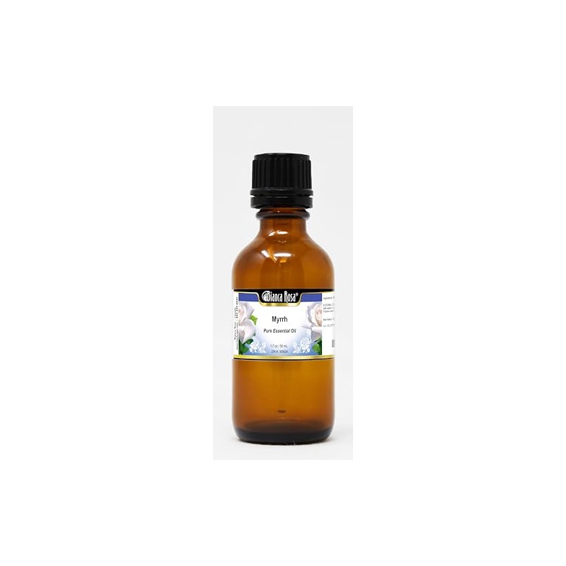 Botanical Name: Commiphora myrrha - Extraction Method: Steam Distilled - Color: Golden Yellow/Brown - Consistency: Medium - Perfumery Note: Base - Aroma Strength: Medium - Strong - Aroma: Warm, earthy, woody, balsamic. - Use: Amenorrhea, athlete's foot, coughs, chapped skin, dysmenorrhea, gums, halitosis, hemorrhoids, itching, mouth, toothache. [Julia Lawless, The Illustrated Encyclopedia of Essential Oils (Rockport, MA: Element Books, 1995), 56-65.] - Constituents: Heerabolene, limonene, dipentene, pinene, eugenol, cinnamaldehyde, cuminaldehyde, cadinene. [Julia Lawless, The Illustrated Encyclopedia of Essential Oils (Rockport, MA: Element Books, 1995), 125.] - Cautions: Mildly toxic when taken internally (no essential oil should be taken internally without the guidance of a qualified aromatherapy practitioner). [Robert Tisserand, Essential Oil Safety (United Kingdom: Churchill Livingstone, 1995), 208.] Lawl - Essential Oils by Bianca Rosa are 100% Pure Natural Essences derived from the highest quality fruits, flowers, leaves, spices, herbs and roots. Our essential oil distillers and growers are located around the world, operating ethically, organically and chemical-free. - Bianca Rosa Essential Oils Are Not Tested On Animals. - All pure essential oils should be used with care. Do not apply directly onto skin. A 2% dilution of essential oils to a base of carrier oil or lotion is can be used for all skincare and preparations. - Avoid contact with sensitive areas, such as eyes. Citrus oils are photosensitive and should not be applied prior to sun exposure. During pregnancy, use only with advice from a trained aromatherapist. For external use only. Keep all bottles out of reach of children. - 100% Pure Myrrh Essential Oil - USAGE: Add 1-3 drops of Bianca Rosa® essen