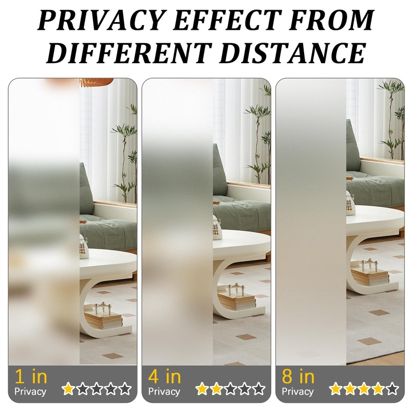 - PRIVACY PROTECTION: The privacy window film provides 98% privacy level and blocks out prying eyes from the outside, it is a perfect choice for who wants have a private place with natural light