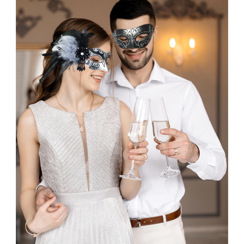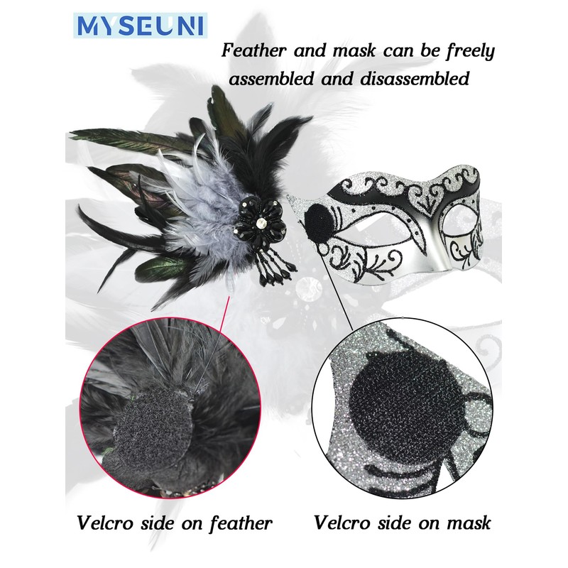 - Elegant Masquerade Mask Women: Silver and white masquerade mask with feather is a stunning and eye-catching accessory. The light and nimble feathers will dance in the air with your steps
