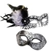 MYSEUNI Silver Masquerade Mask for Couples -Masquerade Mask for Women with Feathers & Venetian Half Mask Halloween for Masquerade Party, Mardi Gras, Halloween Cosplay Prom, Christmas