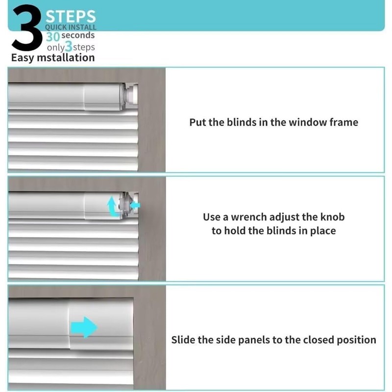 - The cordless feature of the design guarantees the safety of children, and it can be smoothly and silently installed on either the inside or outside of the window frame. effortlessly control the room lighting by lifting the cellular blinds with the handle. customize your choice with various colors and sizes to perfectly match your indoor or outdoor decor style. its easy installation makes it suitable for both homes and offices