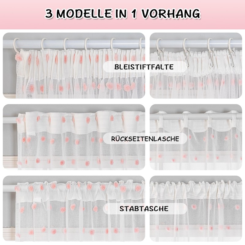 - Hanging options: 1. Rod pockets, 2. Pencil pleat, 3. Clamping rings. Choose your favorite look to enhance your home. Warm Tips The hanging accessories are not included in the package.