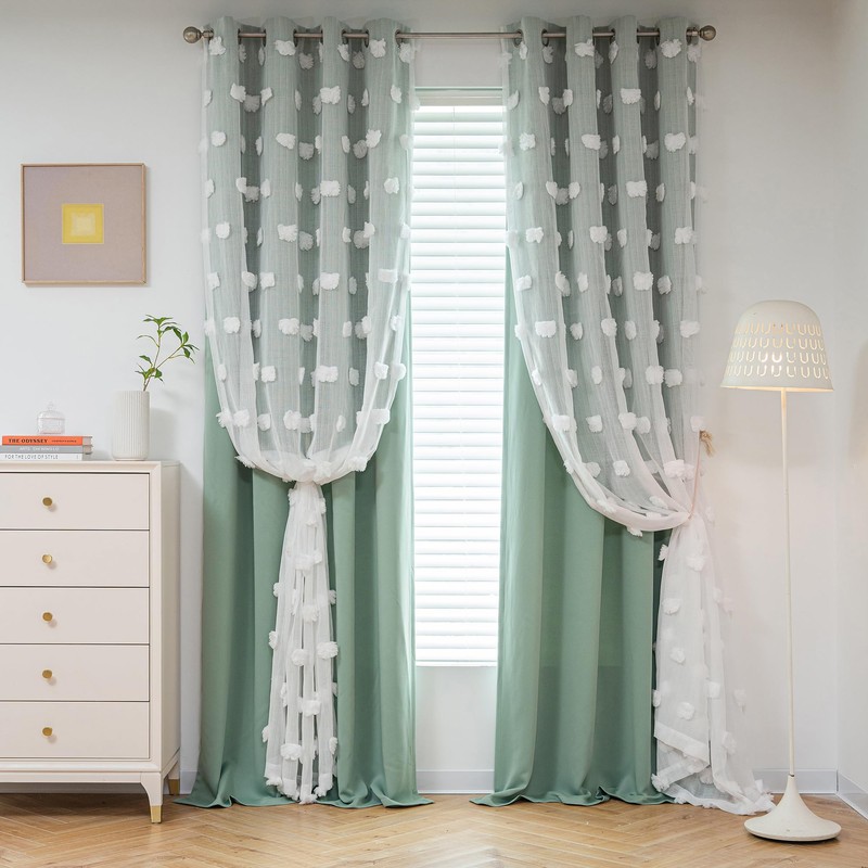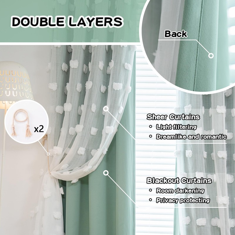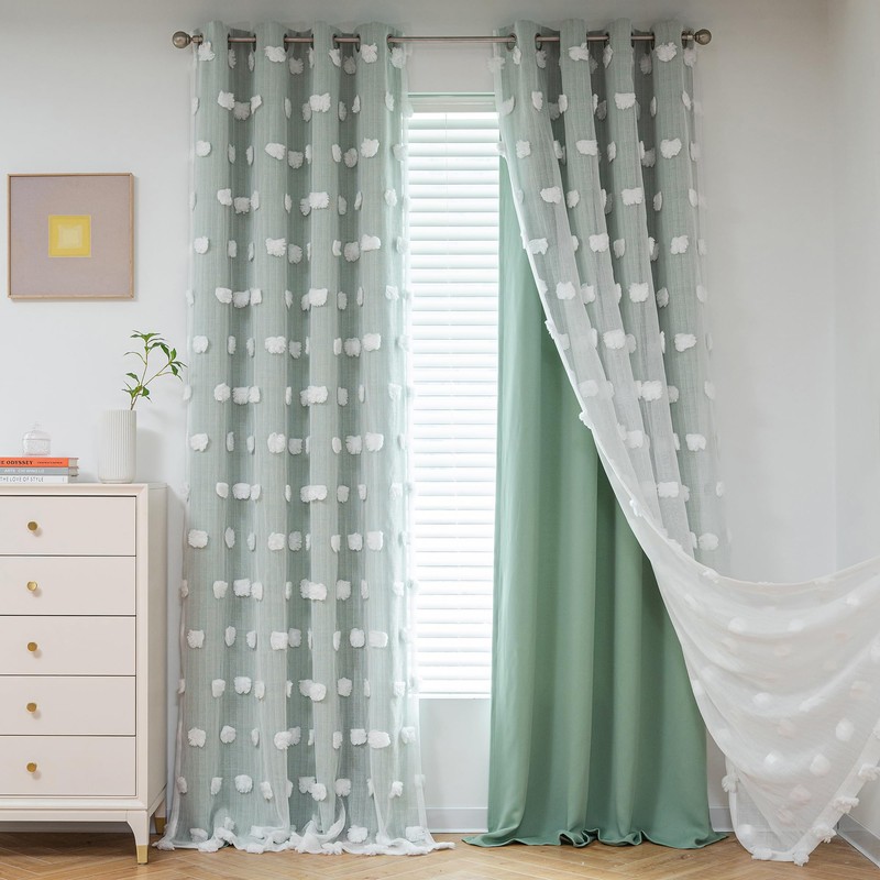 - Unique Design: The unique big pom pom design looks very high-end, update the look for your room. Our 2 layers sheer and curtains window treatments look great in any style of home, offering a lightweight, airy feeling that softens the ambience of a room
