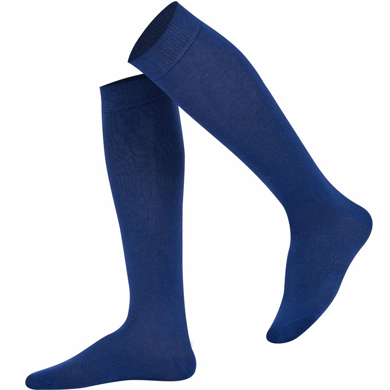 MySocks - Calcetines altos hasta la rodilla para mujeres y hombres, algodón peinado sin costuras, puntera alta y alta, Índigo, 4-7