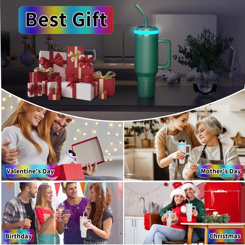 - TOP GIFT - Multi functional creative and modern design make the mood lighting tumbler is the best gift choice on any occasions, such as used for Yoga music player, in friends party, go camping outside with family and friends, Christmas Day , Easter Day, Thanksgiving Day , Birthday, anniversary, Mothers Day , Fathers Day , Halloween , wedding, etc.