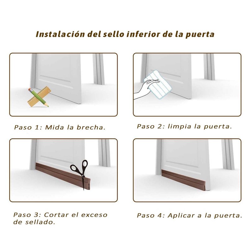 - 【Fácil de instalar】1) Mide la parte inferior de la puerta y corta el exceso de sello; 2) Limpia y seca la superficie; 3) Retira la película trasera; 4) Aplica la tira a la puerta y se mantiene en su lugar. Toma un par de estos pasos y te sorprenderá los resultados