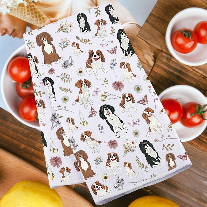MYSOMY Cavalier King Charles Spaniel Kitchen Towel Cavalier King Charles Spaniel Gifts Cavalier King Charles Spaniel Dish Towel (Black Tan Dog UK)