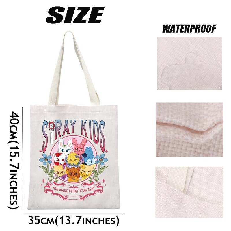 MYSOMY K-Pop Group Gift K-Pop Group SKZ Tote Bag SKZOO Characters Tote Bag SKZ World Tour Merchandise, Stay Tb3, 13.7 inches x 15.7 inches, Stay Tb3