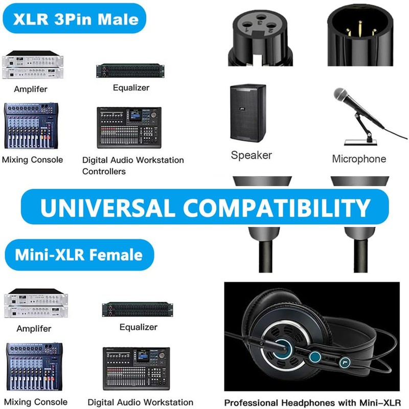 - Cables are widely used in amplifiers, audio interfaces, audio mixers, mini microphones, 4K cameras, etc. Any XLR male & female plug is connected to the Mini XLR female plug audio device.
