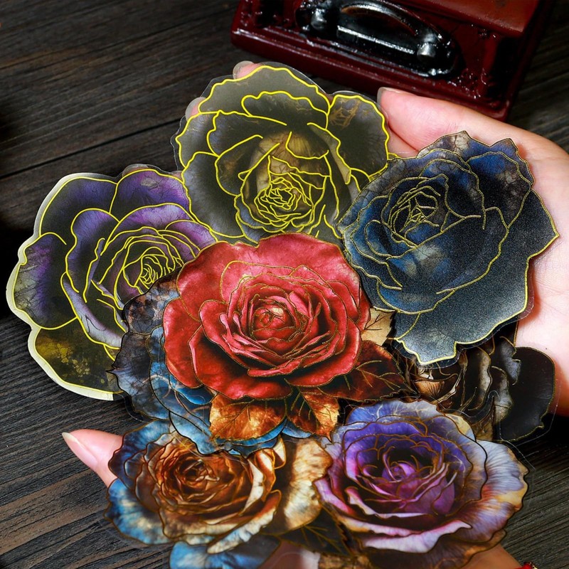 Mysterious Rose Series Rose Seal Rose Collage Material Notebook Decor Retro Romantic Junk Journal Antique (Fervent)
