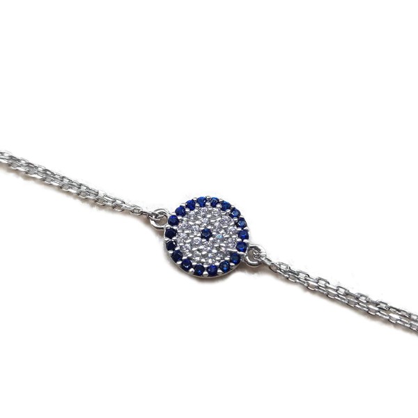 MYSTIC JEWELS by Dalia - Turkish Eye Bracelet - Cubic Zirconia - Double Chain 16-18cm Adjustable, Silver, Cubic Zirconia