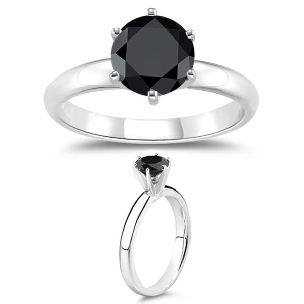 Mysticdrop 1.00 Ct of 5.65-6.37 mm A Round Black Diamond Engagement Ring in Silver