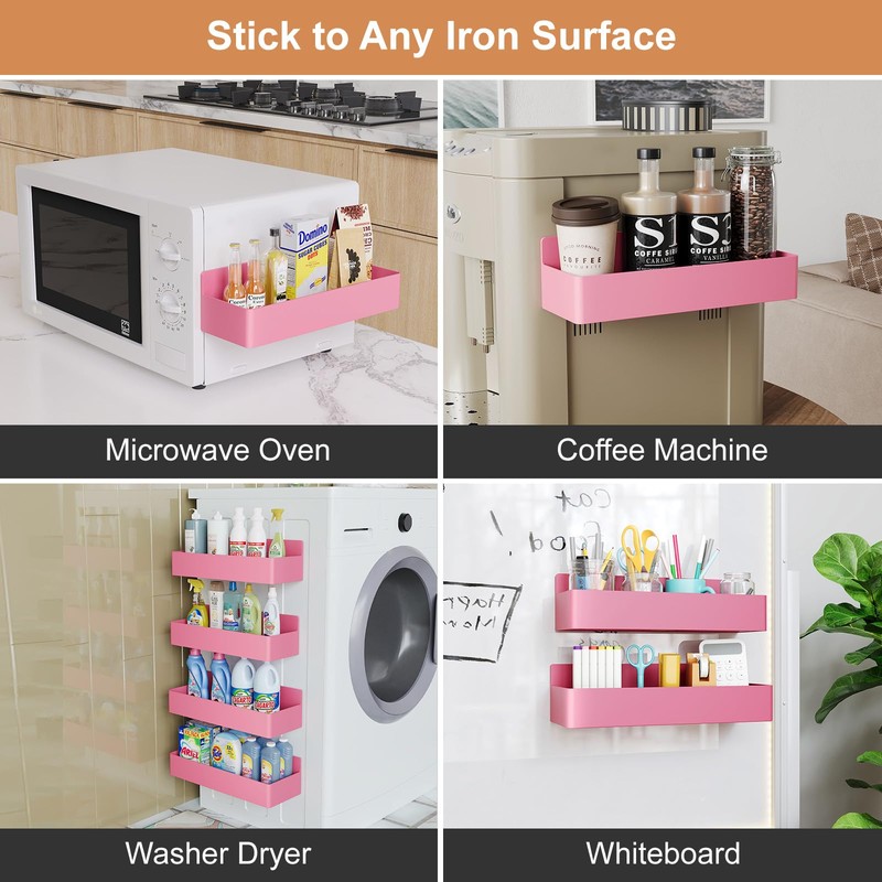 Mystozer Magnetic Spice Rack for Refrigerator, Kitchen Organizer and Storage Shelf, Pink(4 Pack)