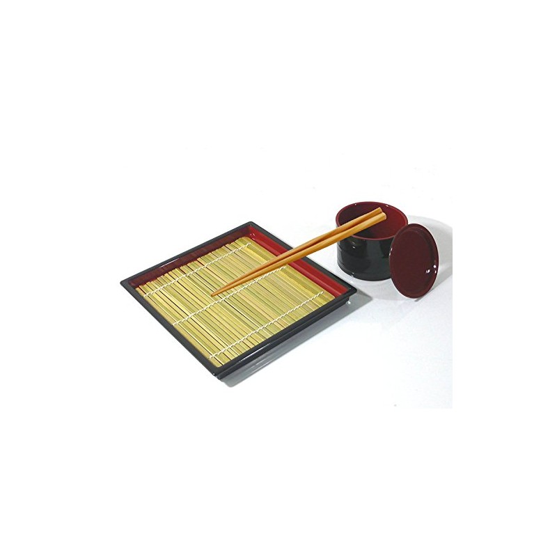 MySushiSet - Japanese Square Zaru Soba Noodle Tray with Tsuyu Dipping Cup Red